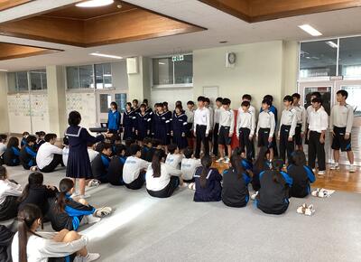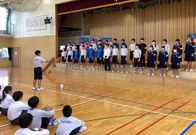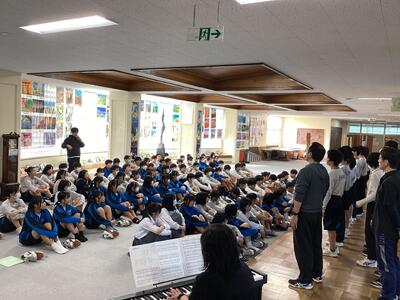 体育の部で育んだ各ブロックの絆を合唱にも生かすとともに、さらに絆の深まりを実感できるよう、ブロックの1~3年生が一堂に会し、合唱を聴き合ったり、アドバイスし合ったりする取組がブロック合唱です。