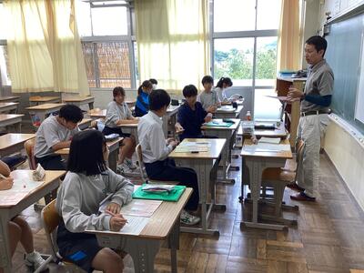 10月10日(金)の5・6校時は、伊東市内の事業所にご協力をいただき、2年生のキャリア学習(職業講話)を実施しました。